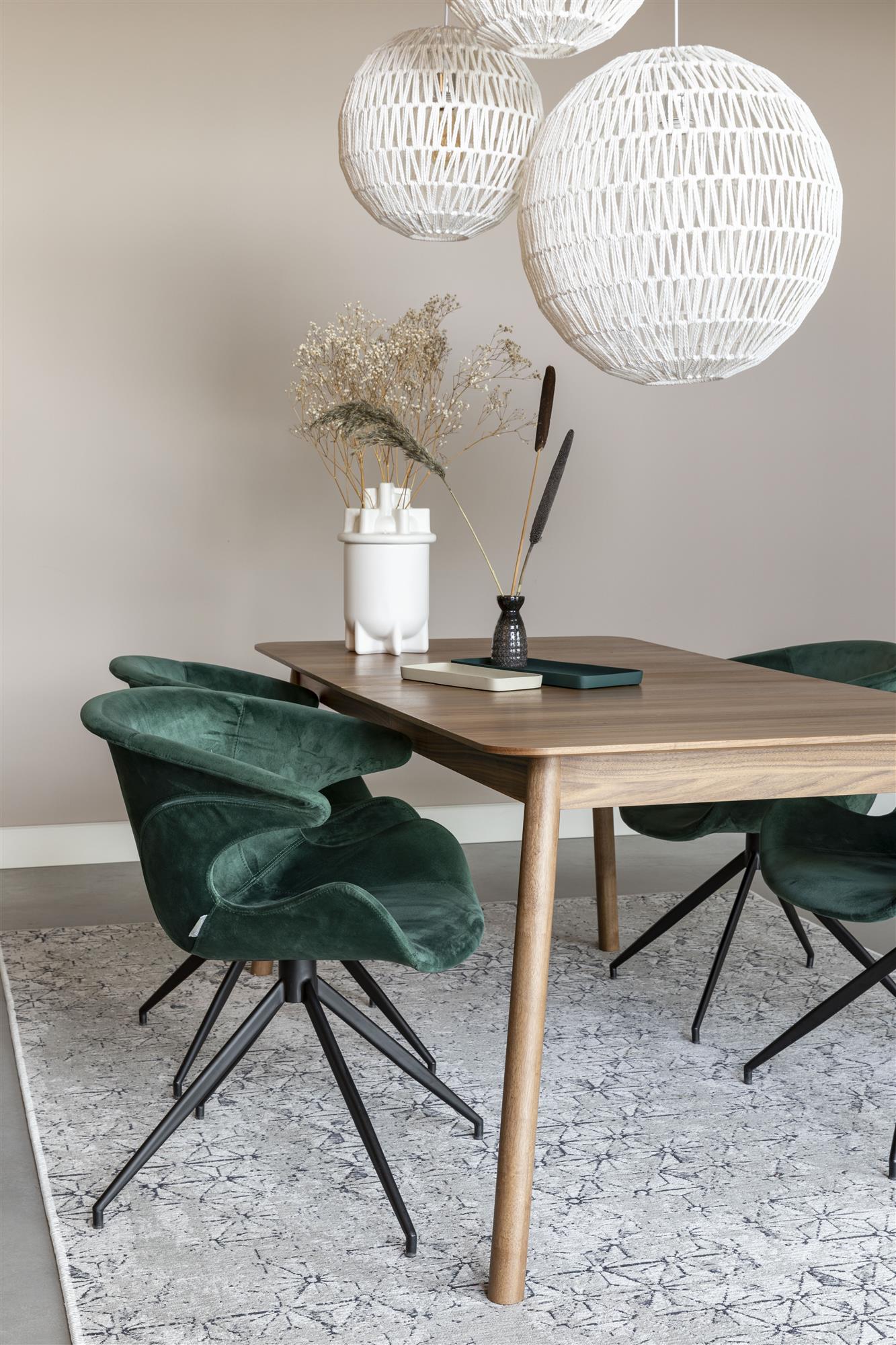 Mia stolens design inviterer dig til at tage plads og nyde et øjebliks ro. Den bløde, velourbetrukne overflade føles luksuriøs mod huden, mens sædets kurver er formet til at omfavne dig på en ergonomisk og behagelig måde. Det er en stol, der indbyder til afslapning og velvære, uanset om den står ved spisebordet, i stuen eller på hjemmekontoret.